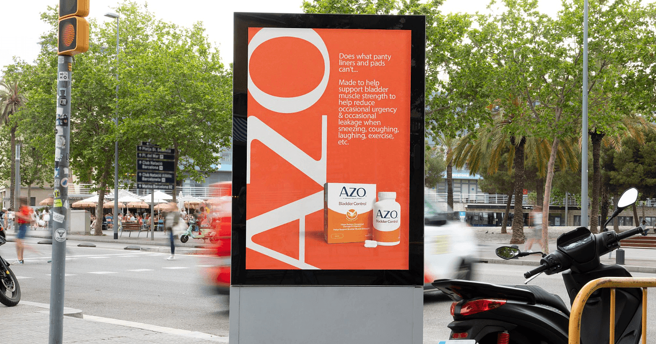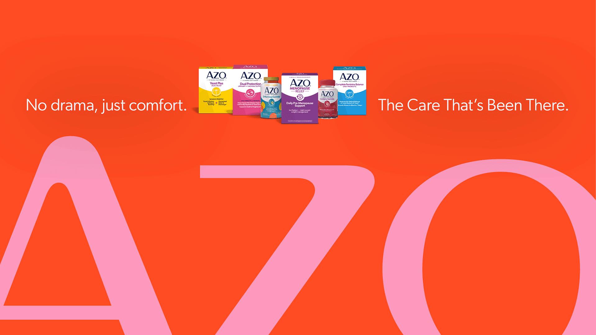 The AZO logo presented as a super-graphic to create a striking backdrop for product and messaging. Ever-present and bold the the dynamic cropping leans into the negative shapes of the wordmark to elevate and modernize the brand.