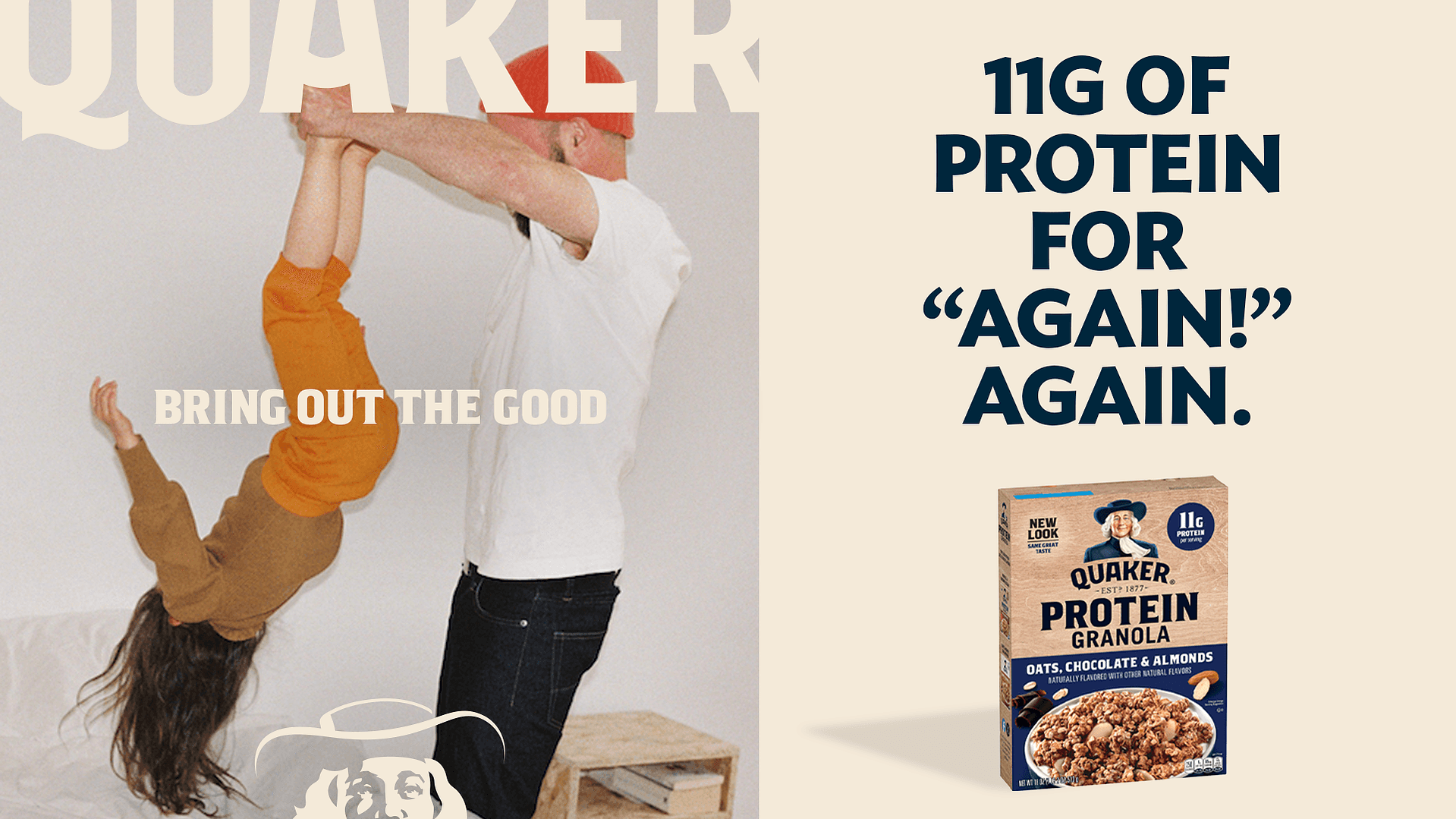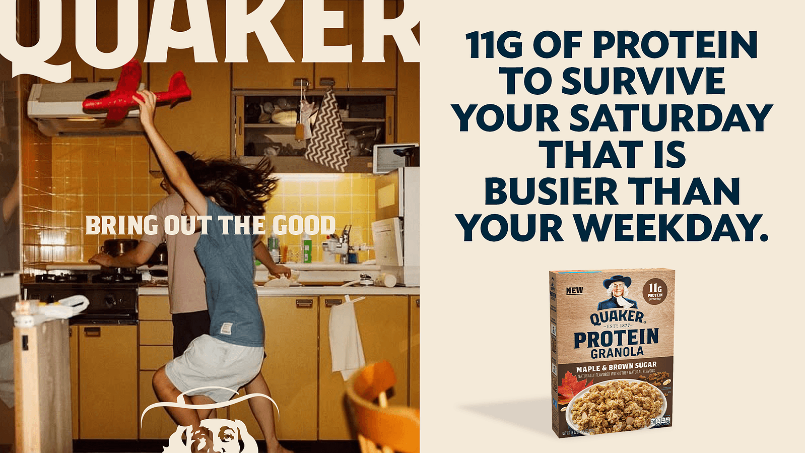 Raising a family requires sustained energy and strength. You get a workout every time your try and dress a wiggling toddler. Monkey bar squats are a reality. Looking for a missing shoe gets you “steps” and “stairs climbed.” That's why we made Quaker Protein with enough protein for all the activity that families do, but don’t always realize. No matter how you protein, whether it’s with Instant Oatmeal, Bars, or Granola, Quaker can fuel any family.