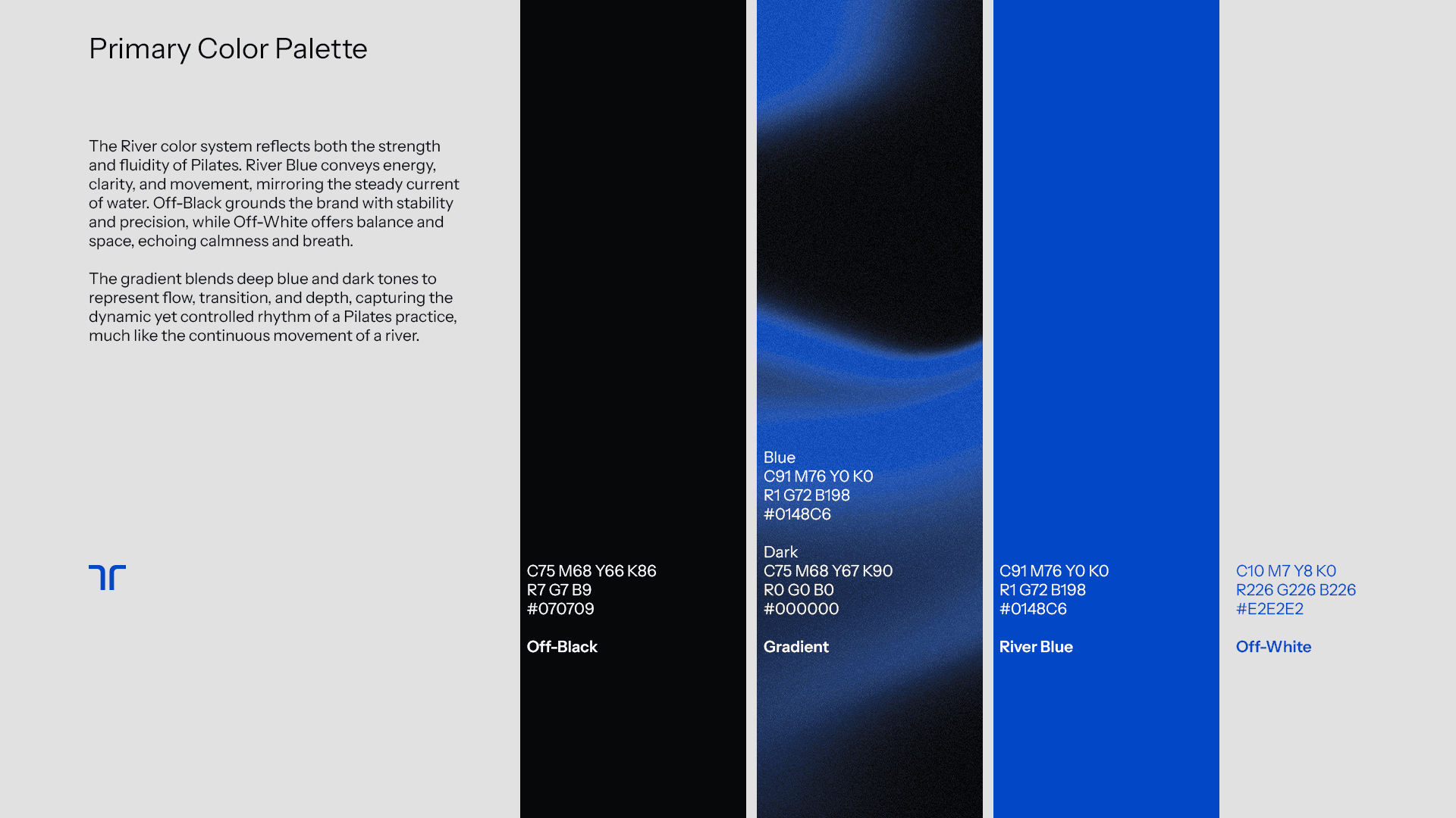 Led the development of a cohesive brand identity system, spanning logo, typography, color, and visual direction. Designed to express fluidity and control while maintaining consistency across digital, print, and physical environments.